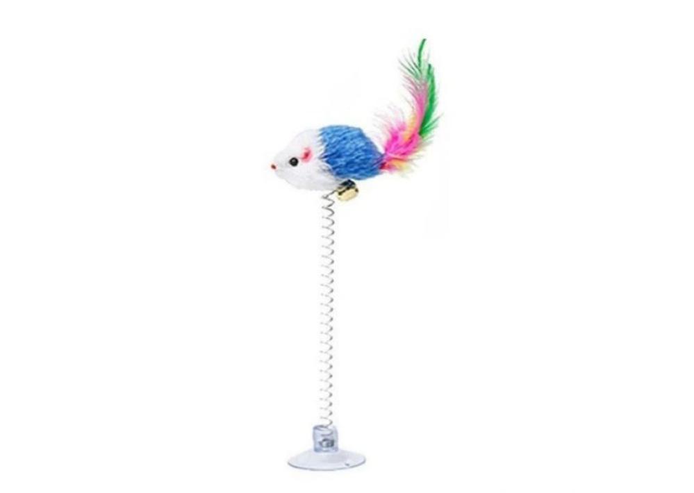 🐾 فأر ملون ذو ذيل ريش نابض يتحرك بطريقة عشوائية عند لمسه بفضل الزنبرك، مما يجعل القط لا يستطيع مقاومته!