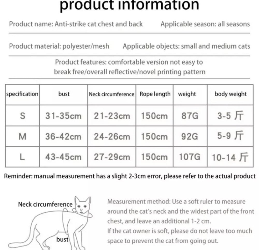 مشد وصدرية للقطط مع حبل بطول متر ونصف